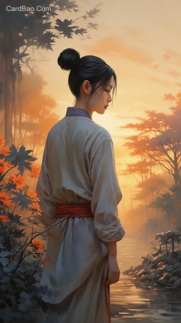 The sun sets in the west, the boy's tall figure