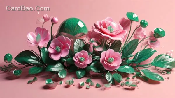 3D模型,翡翠花和翡翠蘑菇融合抽象,时尚艺术创作,粉色调