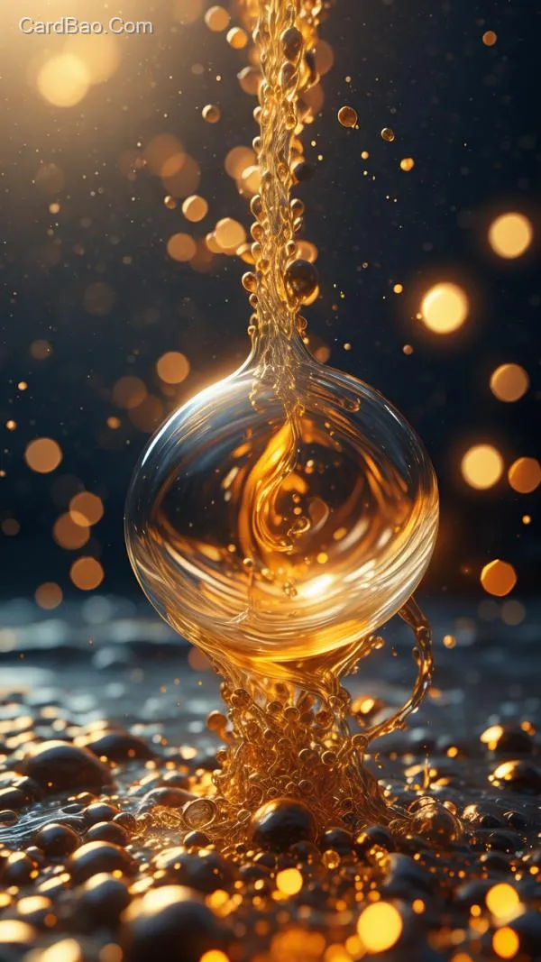 金色光芒的液体海洋表面,金色纹路,流体质感,电商科幻背景,闪烁的光芒,极致高清,辛烷值,电影级渲染,科技感,未来感,光效渲染,光影效果,粒子渲染,真实感