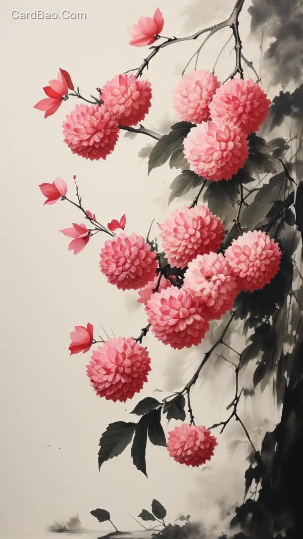 水墨画,荔枝,岭南,晕染,做旧,绢本,超高清晰度,长镜头摄影图片