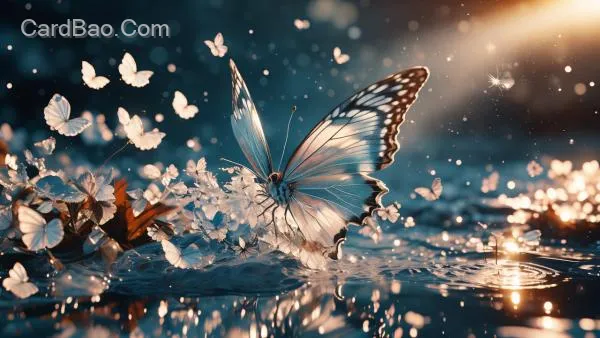 A beautiful butterfly flutters over the gradually melting water surface, with a vivid and dreamlike shimmer of silvery white, an unimaginable beauty.