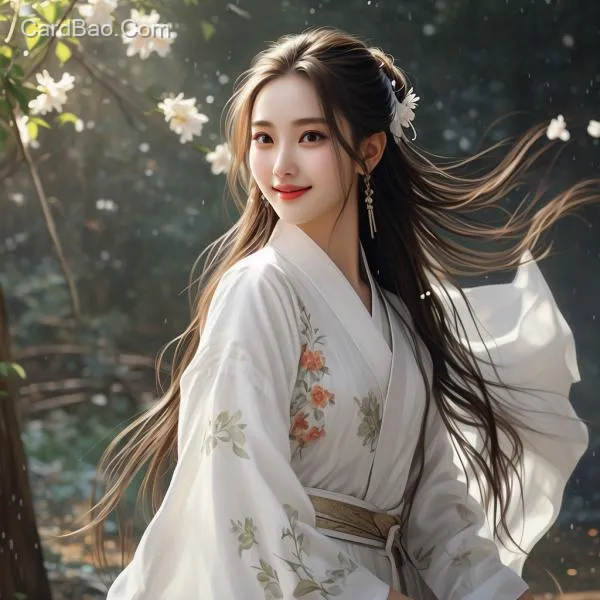 白色衣服, 美女, 长发, 直发, 灵气, 全身, 微笑, 4K