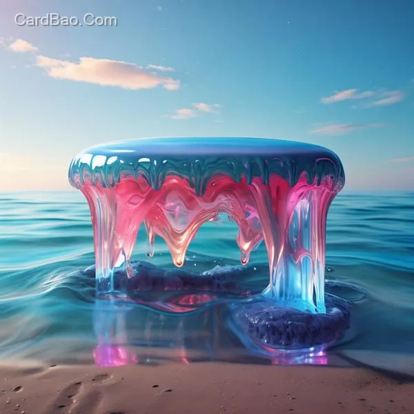 Blue-pink gradient fluid stool, 3D rendered ocean, flowing art, realistic style