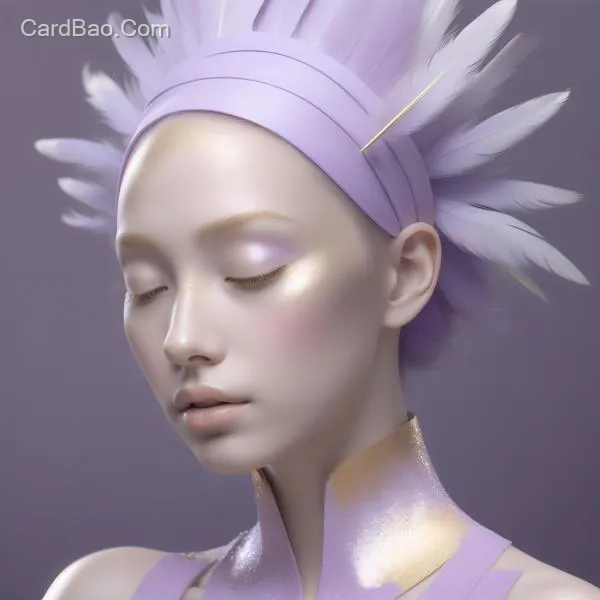 羽毛状曲线含金属尘细节,哑光质感,淡薰衣草灰点缀,
