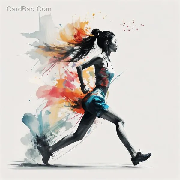 抽象艺术,清晨,女子跑步,马尾长发。画面简约,动感,摄影风格。