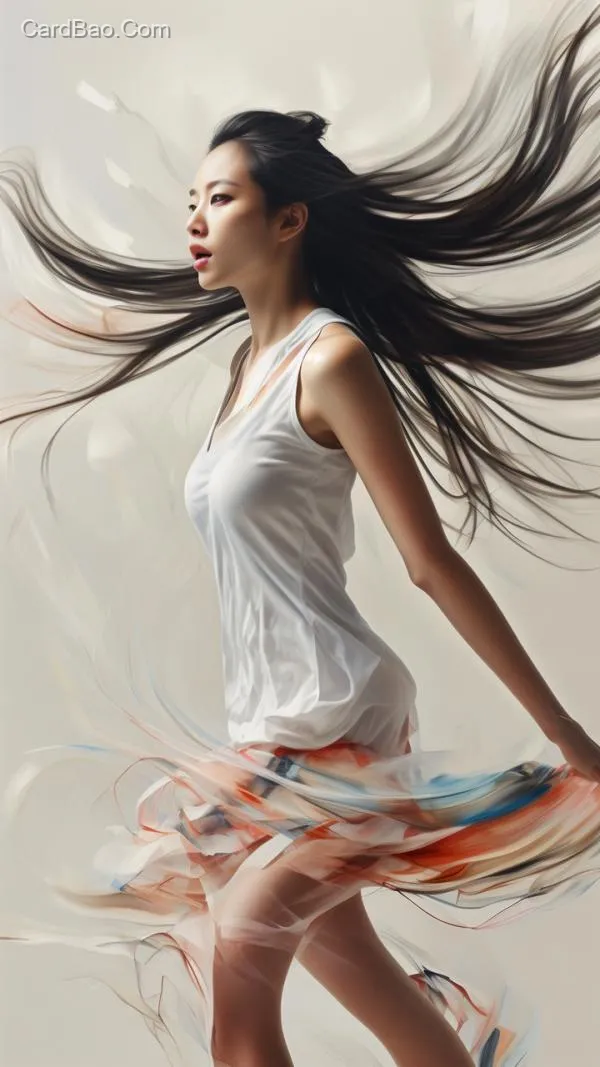 抽象艺术,清晨,女子跑步,长发飘乎。画面简约,漂白,摄影风格。