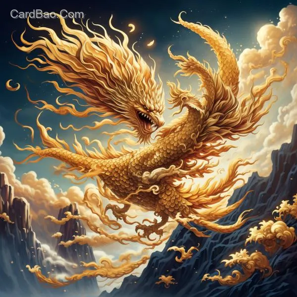 The golden dragon soars, the colorful phoenix dances, high mountains and flowing waters, reaching for the moon in the ninth heaven.