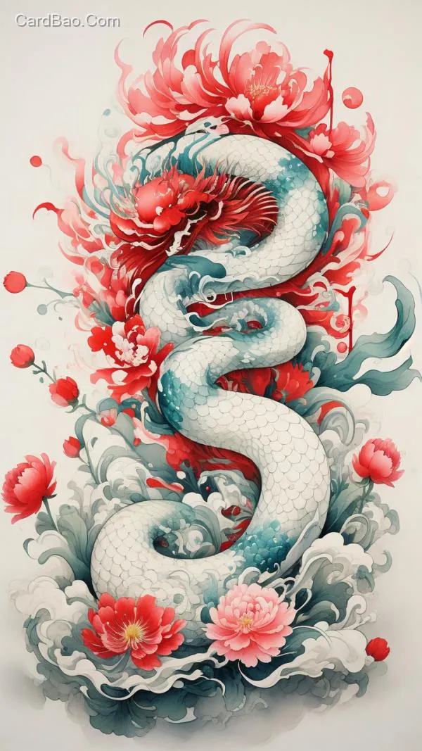 中国风,喜庆,玉,蛇,可爱,牡丹花,颜色极美,萌萌,漂亮梦幻,洛可可,不敢想象的美丽,康定斯基,动漫,绘本