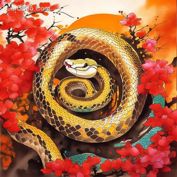 蛇年艺术海报,一条蛇缠绕成气势磅礴的8字样,红色,金箔岩彩,祥云缭绕,抽象,形象,带有磨砂肌理,背景撒金,写意,主体蛇完美融入背景之中,小字“2025”,大字“新年吉祥”,构图新颖,大师级排版,极简主义,超高清,大面积空白,没有多余文字