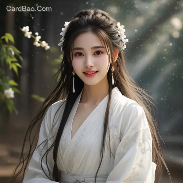白色衣服, 美女, 长发, 直发, 灵气, 全身, 微笑, 4K