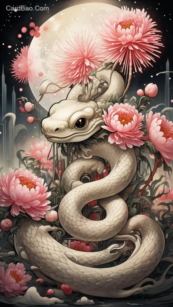 中国风,喜庆,玉,蛇,可爱,牡丹花,颜色极美,萌萌,漂亮梦幻,洛可可,不敢想象的美丽,康定斯基,动漫,绘本