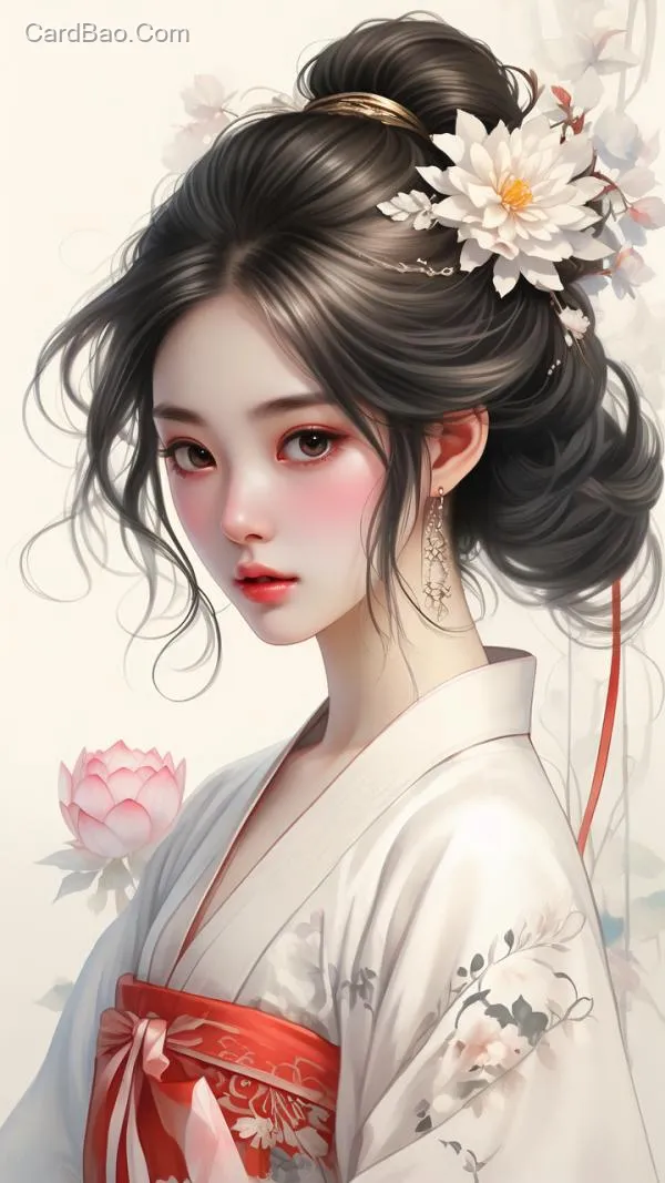 Oriental beauty avatar, elegance that outshines past and present, lotus flower shy of jade-like features, simple cartoon style.