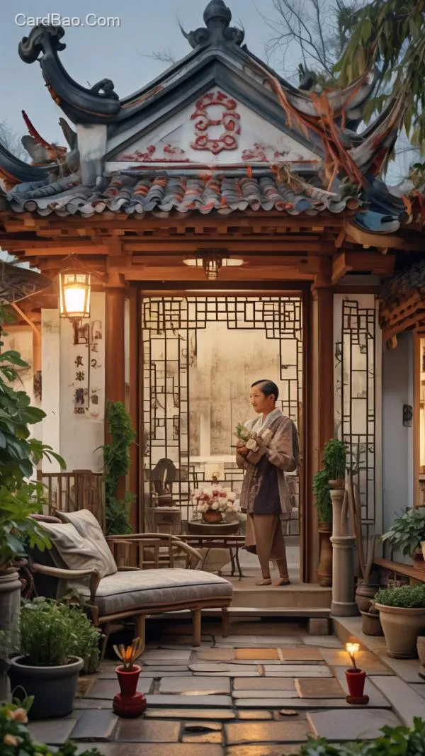 After retirement, a garden-style life in front of and behind the house. The lady of the house, beautiful in front of the house.