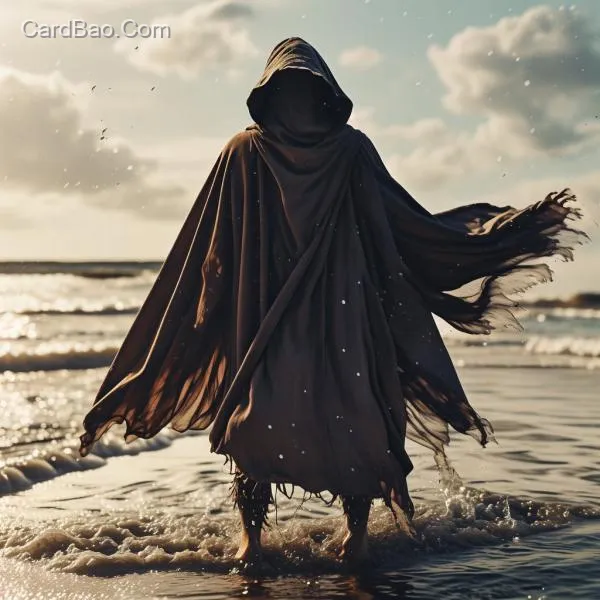 欧美男子斗篷背影,大水球里的游鱼,沙滩,魔法特效