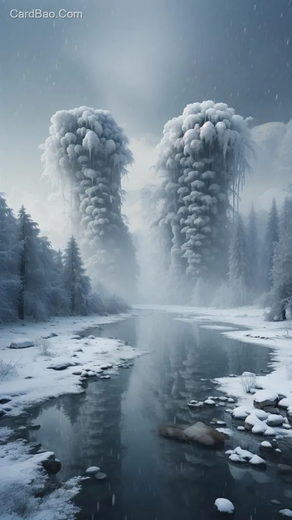 The landscape is magnificent, with mushroom-like rime frost, varying in height.