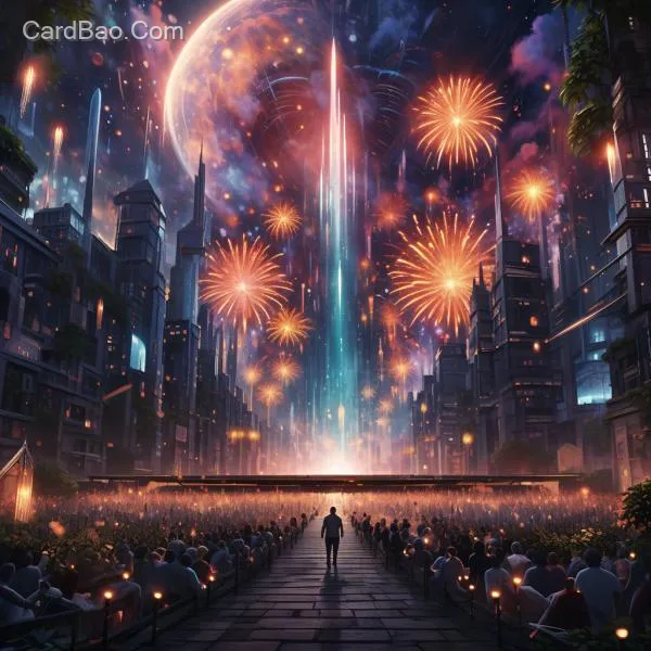 A plaque inscribed with "Happy New Year," adorned with gemstones.