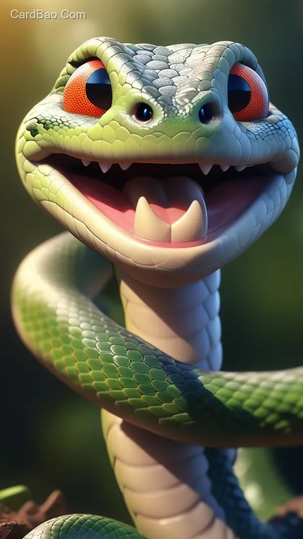 可爱笑呵呵的小蛇,3D立体,CG,哈哈大笑,超高分辨率,质感细腻