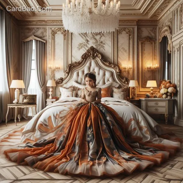 Luxurious European-style classical bedroom, a baby girl in a wide gauze skirt.