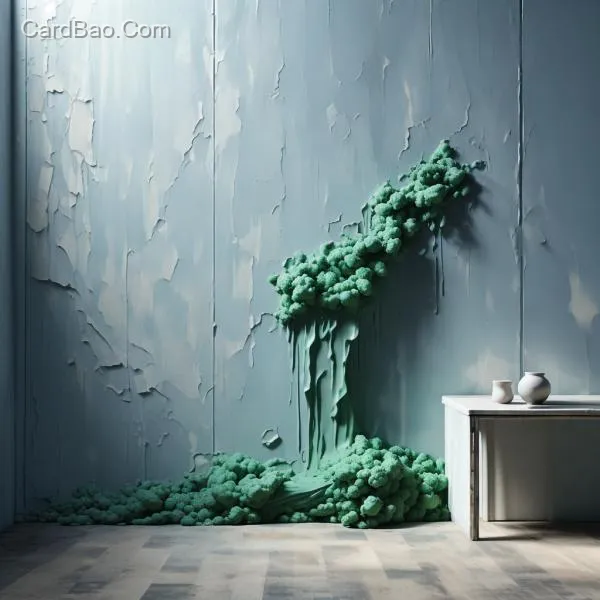 蓝色光滑墙面的缝隙流出绿色粘稠液体