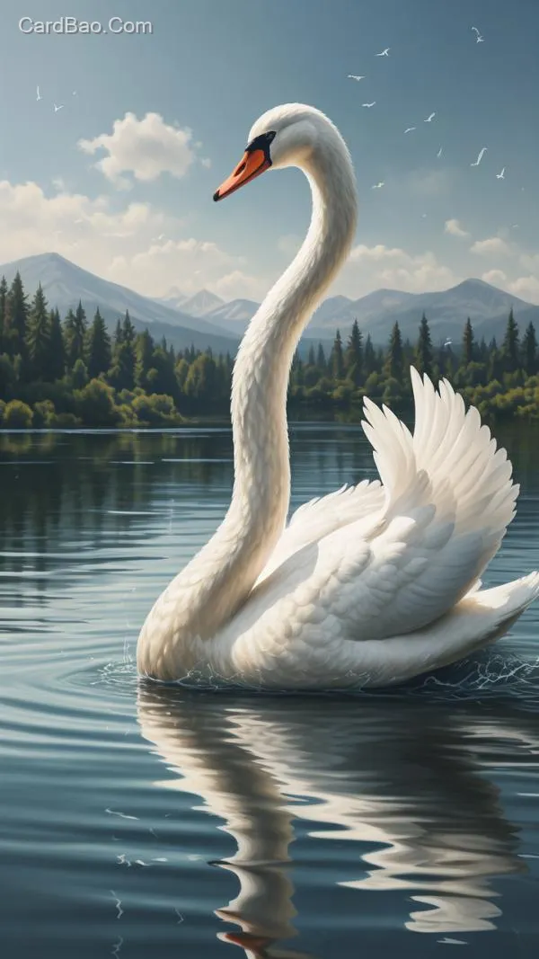 A beautiful white swan is swimming in the lake.