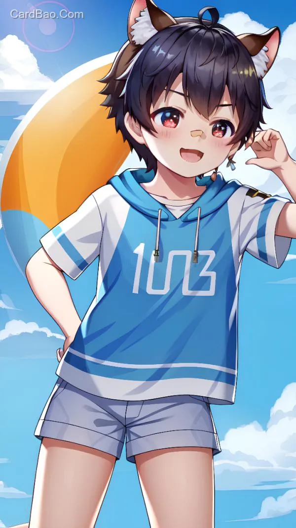 怂鼠,明媚夏天,蓝天白云,男孩鲜花,超高清细节