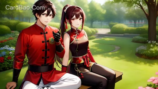 少男少女,肩并肩坐在一起,Q萌,武侠风,游戏风,CG画质