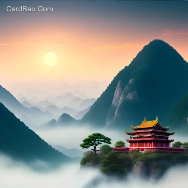 Environment: Classical Chinese architectural complexes, mountains from traditional ink paintings, a sky shrouded in mist and clouds