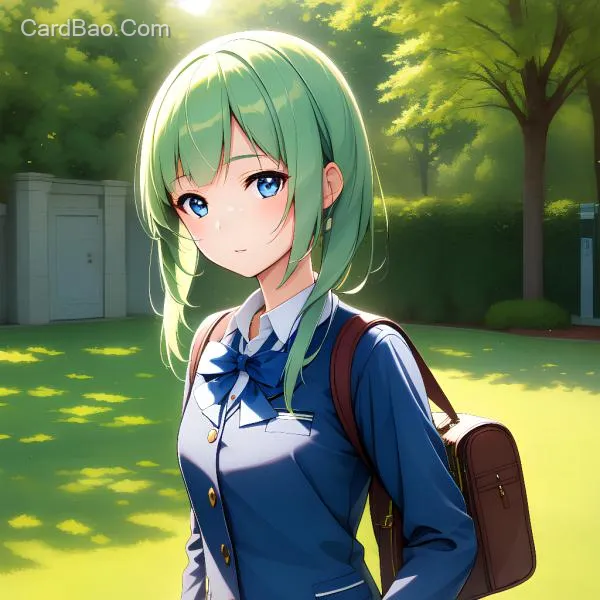 A female student with a ponytail, beautiful face, big eyes, small mouth, wearing a school uniform, carrying a backpack, after school, at the school gate, high definition, detailed, fine hair texture, exquisite clothing, cinematic background, light effects, sunlight, youthfulness.