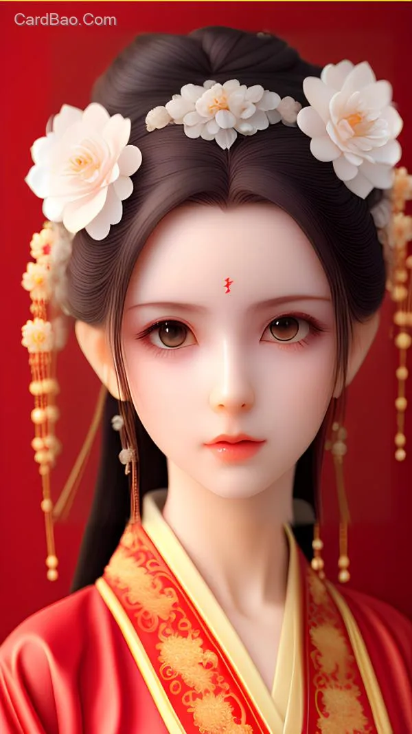 古风少女,小伟,婚礼现场,国风婚礼,古装,红色背景,凤冠霞帔