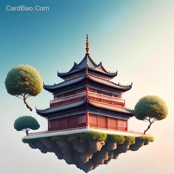 Ancient-style architecture Floating in the air With a three-dimensional feel.