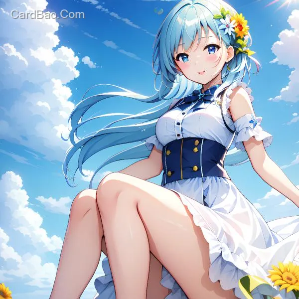 Little hedgehog, bright summer, blue sky with white clouds, beautiful woman with flowers, ultra-high definition details.
