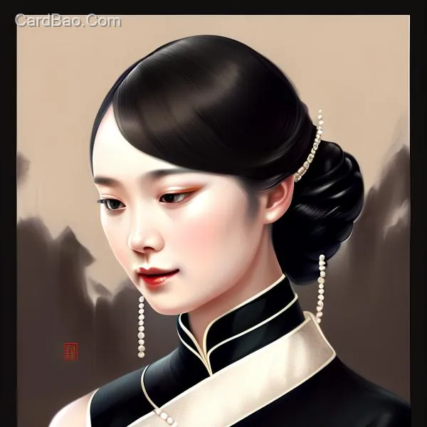 Republic of China era, a solitary young lady in a black cheongsam with white pearls.