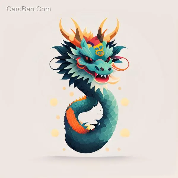 可爱的中国龙的侧面肖像,平面插画,2d,幻想,极简主义,几何图形,大胆构图,色彩鲜艳,卡通,白色背景
