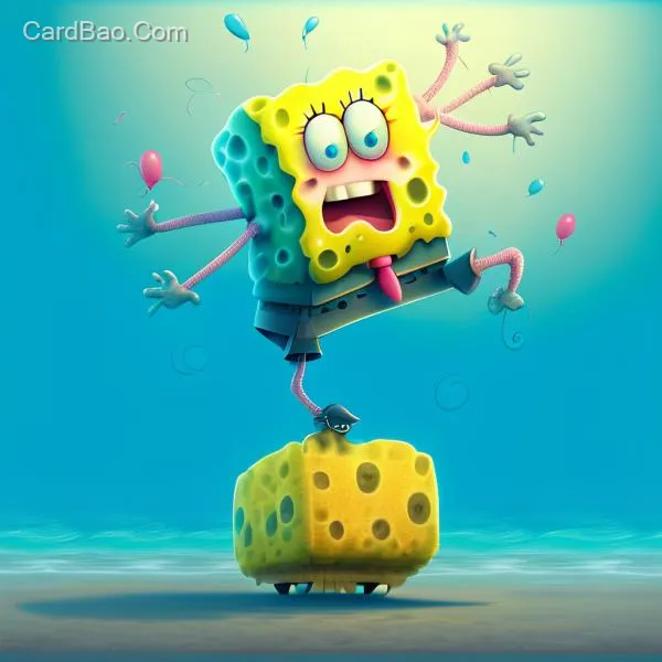 SpongeBob SquarePants, blue ocean background, stepping on balloons.