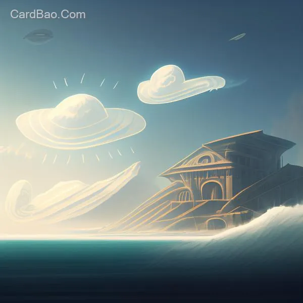 Ancient city, ancient attic, unidentified flying object, white clouds, ocean waves.