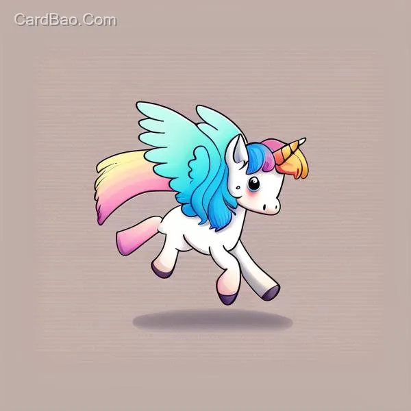 Simple cartoon, unicorn, colorful hair, dreamy wings