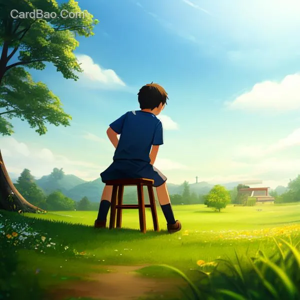 A boy planting a tree, back view, anime style, vibrant thin painting.
