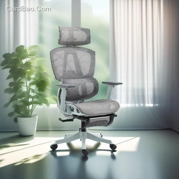 透明图是人体工学椅,椅子后面想搭配室内清晰风格场景,窗帘有柔和阳光,室内搭配可简约