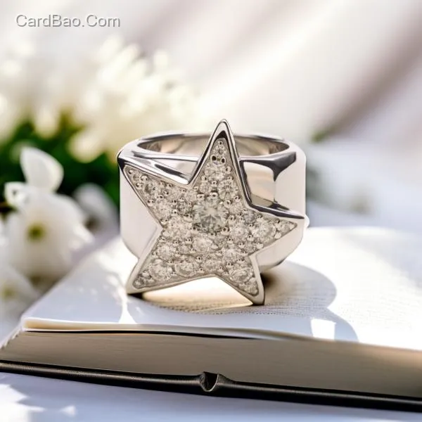 Ring, white desktop, soft natural light, medium shot, small aperture, coffee cup, book, small white flower, clear details, high-end texture, still life photography, product photography style