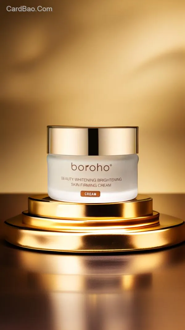 A background of flowing gold white, with a golden storage platform beneath the face cream.
