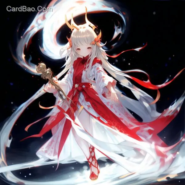 幽灵般苍白的皮肤,散发着冷星云的光芒,((极长的流动的铂金头发溶解成深红色的粒子),金色的瞳孔,被时空断裂撕裂的古老月白色蓝色丝绸汉服,光着脚,戴着被诅咒的金脚链,举着发出深红色等离子极光的黑洞核心灯笼,超精细的金属虹彩,体积深红的薄雾,长有中国龙女一样的龙角