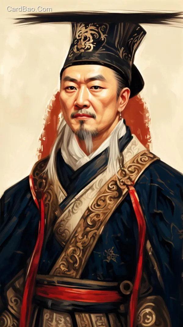 汉武帝,厚涂画法,五官精致,服装精美,表情严肃,