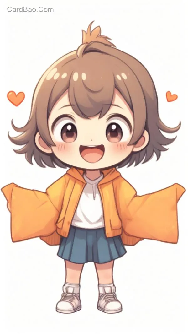Q版卡通头像,粗线条笔触,简单的图形特征,可爱形象,双手举着应援手幅,面露开心,短发可爱,