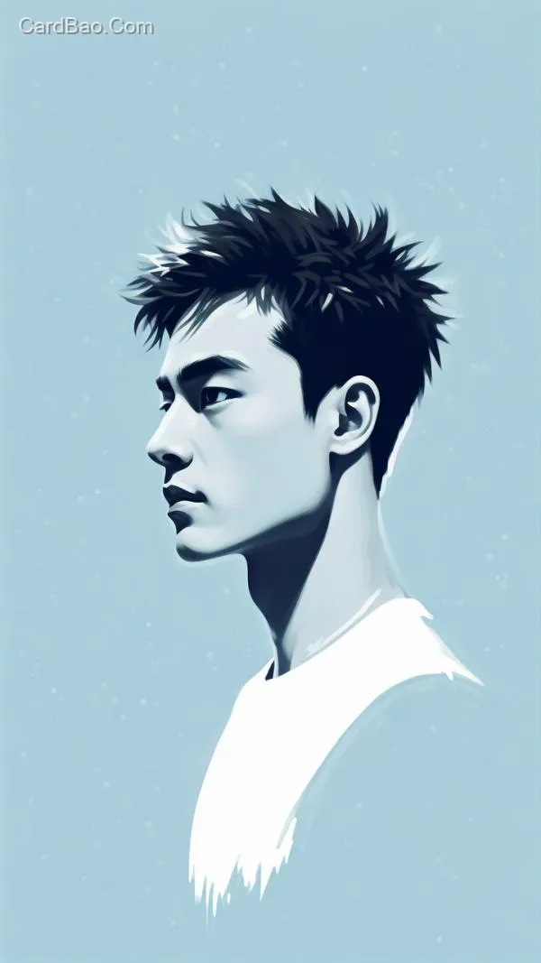Minimalist Hand-Drawn Blue Background with White Silhouette of a Spiky-Haired Handsome Guy in Profile