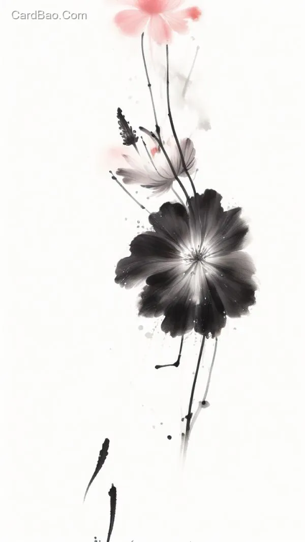 Ink wash painting, lotus flowers, lotus leaves, fish swimming in the water.
