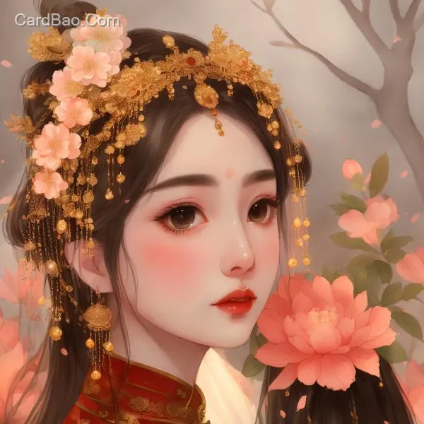 水彩黑白国漫可爱黑发少女