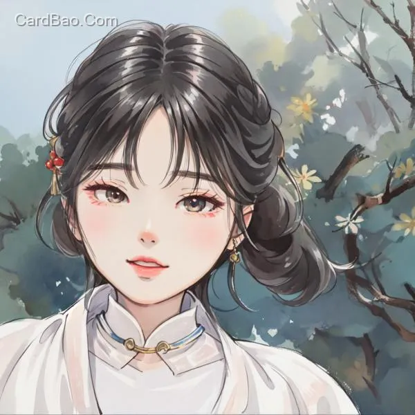 水彩国漫黑发少女