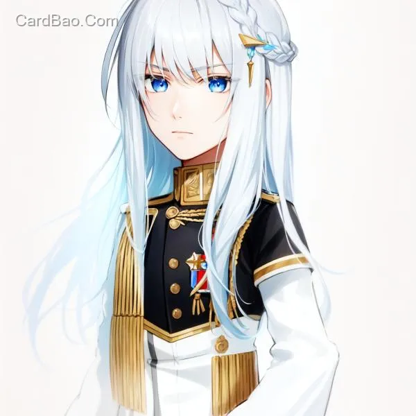 用唯美的二次元画风画一个蓝色眼睛、银色中分长发的贵族青年,时代背景是19世纪的欧洲,他穿着黑色军服,神情严肃冷峻。