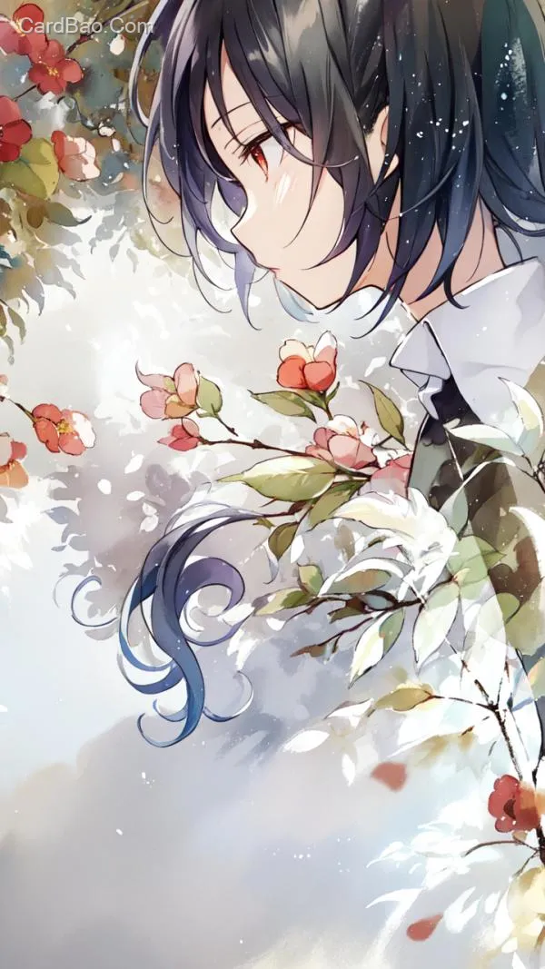 Black-haired girl, Chinese anime style, color scheme as shown, watercolor, cute.