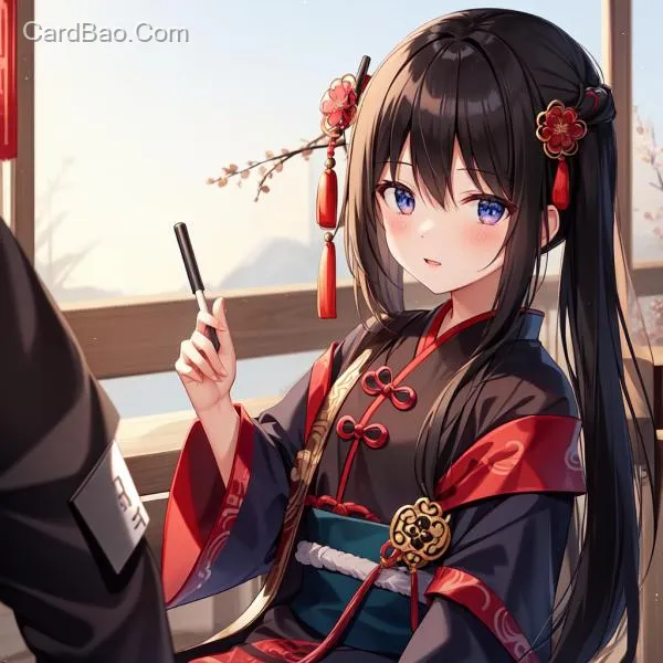 Draw an ancient Chinese female scholar with a blushing face.